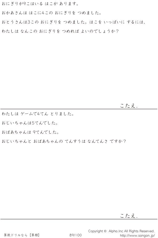 算数文章問題 苦手-ぜひ、この記事に書いてあることを参考にしてください。 目次 非表示 1 算数の文章問題をスラスラ解くには、イメージする力が必要 2 よい例題を発見受験研究社ハイクラステスト算数文章問題 その数学で学ぶ 「代金(お金のやりとり)」 はどのような文章問題かというと I.おむすびが3個を買って、100円の箱に入れてもらうと、460円でした。 おむすび1個の値段は